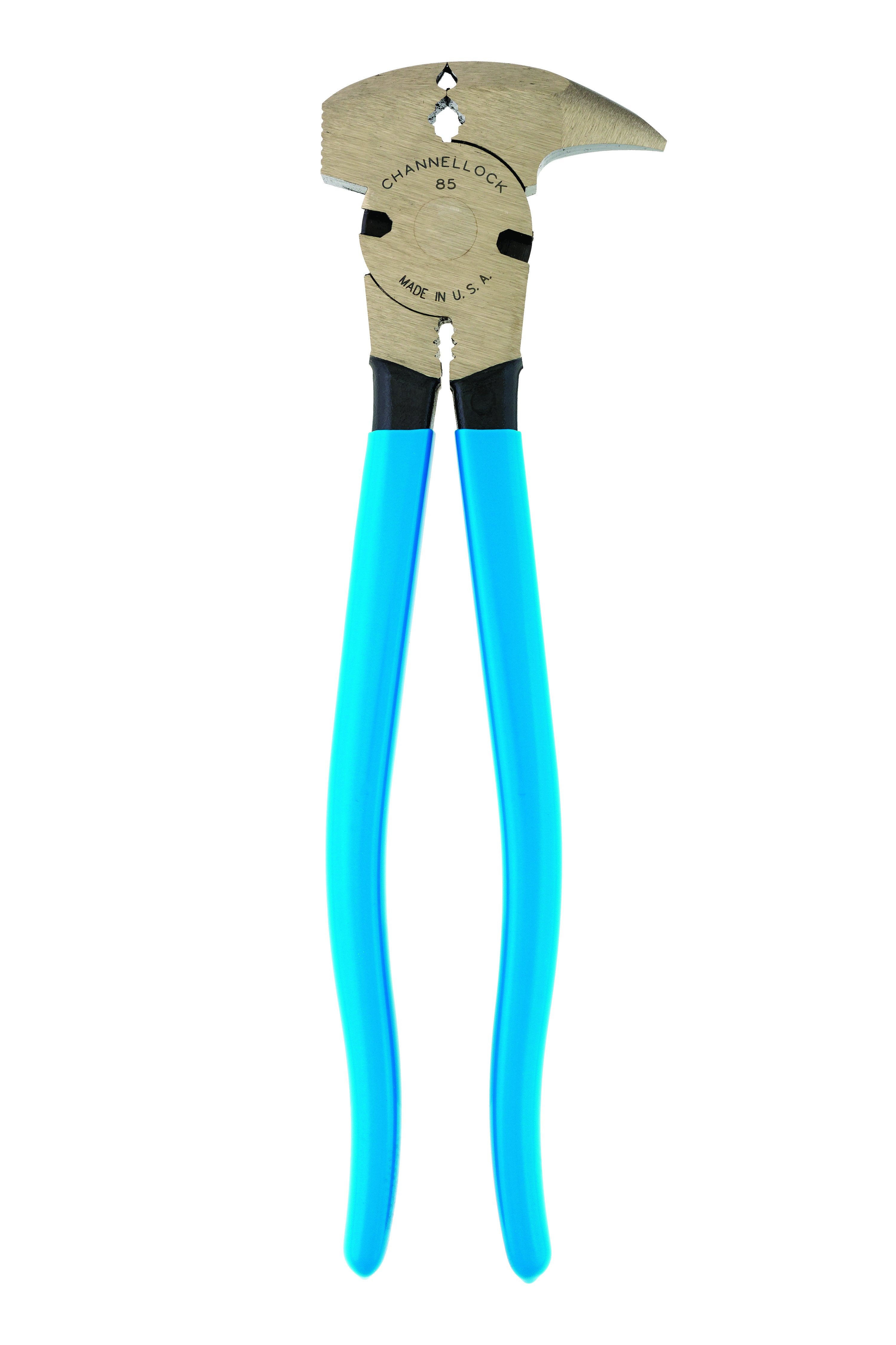 Made in the USA – the last fence plier you'll ever buy, and one you can hand down to the next generation. The Channellock¨ 85 fencing plier is 10.5” long with a curved grip in signature Channellock¨ blue for comfort and leverage. The cutting shears are laser heat treated to last longer and easily cut high tensile wire. The 6-in-1 design includes a hammer, staple starter, puller, wire stretcher, and two cutters. The quality and versatility of this tool is unmatched.