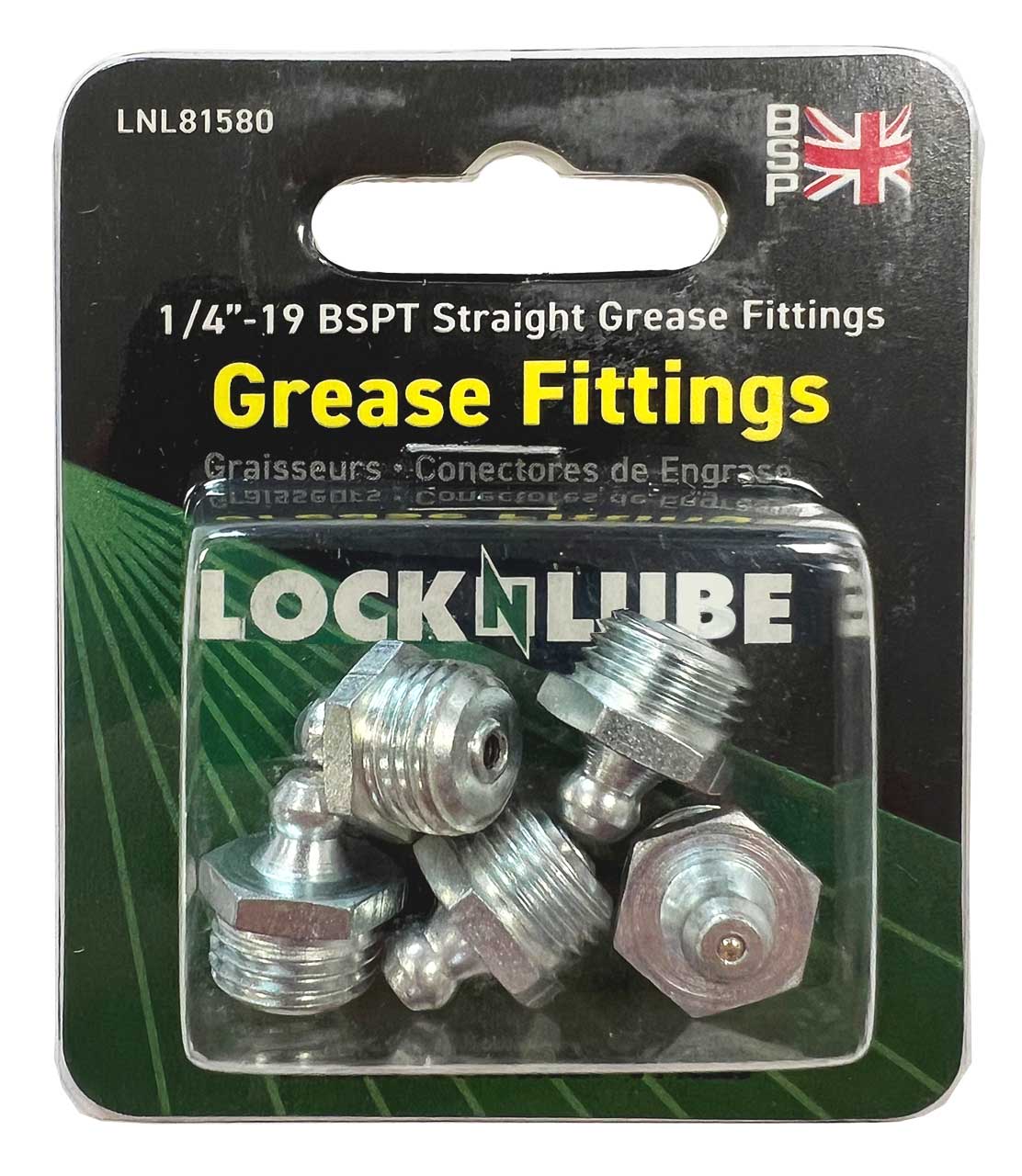 LockNLube Grease Fittings - 1/4"-19 BSPT Straight, 5-Pack