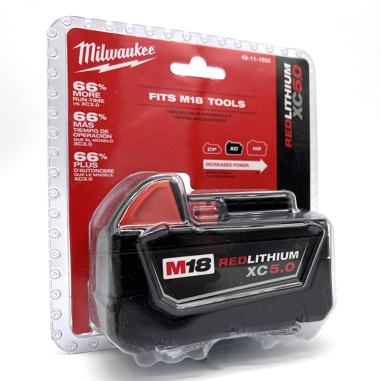 Milwaukee 48-11-1850 M18 XC 5.0 AH 18 Volt Capacity Battery, New In Pack, 1 PC