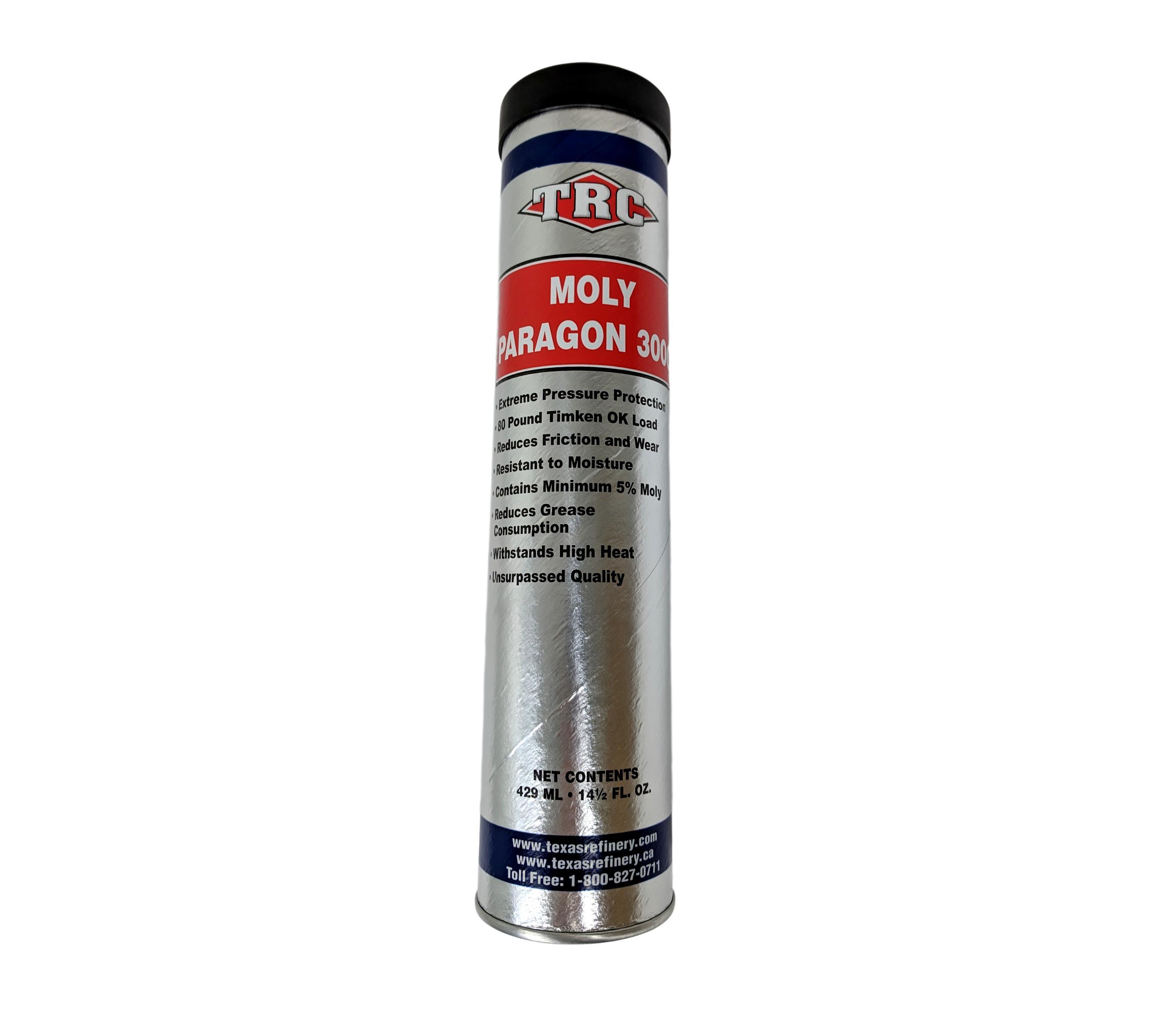 MOLY PARAGON 3000 is an extreme pressure, multi-purpose, calcium-lithium complex base grease. Specially formulated to use in industries with applications that experience extreme conditions such as high shock loading, high heat, moisture, or areas where stability is needed. It is excellent for use on bearings, pins, bushings, cam and slide mechanisms, universal joints, chains, and chassis points.